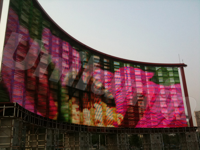 据项目负责人介绍,这个项目最大的亮点在于LED显示屏的智能导轨操控,采用全导轨智能设计,屏幕自由收展,白天屏幕如不使用收起折叠在两边,就展示出“中国中山”四个大字,为中山代言,而傍晚将LED显示屏伸展出来,作为显示屏使用,播放炫彩画面,多功能性。此块LED显示屏市中山市岐江广场最大的一块格栅屏LED显示屏,正好面对着岐江,而提起岐江不难让人想起当地有名的夜游岐江,顺江而下,一览江边风景,这块多彩的显示屏也为当地夜景增添了一到绚丽的色彩。据了解,此次项目总面积高达820㎡,是国内格栅屏应用面积的一次突破,整个项目为弧形屏,采用铝合金框架,重量轻,每平方米≤28kg,可左右开启全吊装式安装,箱体采用网格镂空式设计,充分减轻来自外界的抗击,在强风、强压等恶劣天气下保持正常工作,众所周知,格栅屏的通透性在使用中很重要,太低影响美观,太高影响播放效果,岐江广场的通透格栅外形设计为25mm,通透率达30%,可透光、透风、防水,是格栅屏最佳的使用模式。