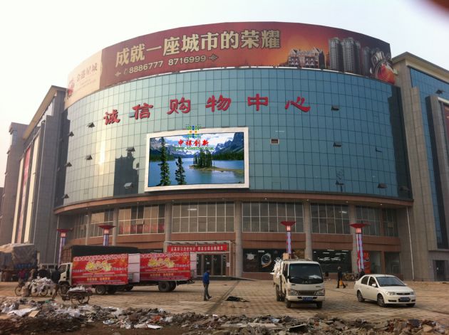 当前位置:首页>>LED精彩案例>>山东济宁诚信购物中心户外全彩LED显示屏