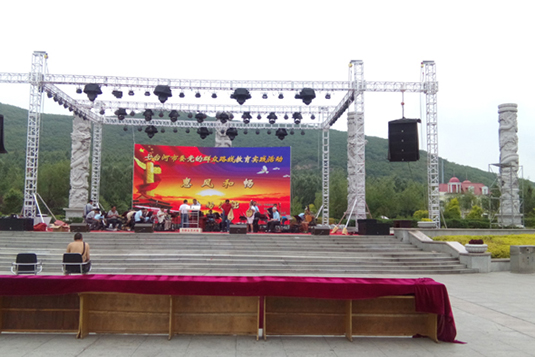 德彩光电P10户外全彩LED显示屏大屏幕应用于七台河市委宣传部舞台演出,显示屏面积为120平米。