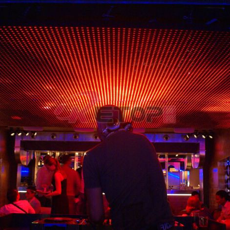 荷兰酒吧室内全彩LED显示屏大屏幕系统,使用锐拓显示P16LED显示屏装饰天花板,可打造彩灯梦幻的效果,或者播放舞曲给酒吧带动气氛。