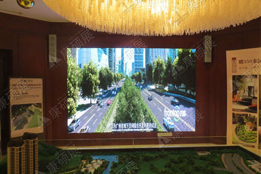 特色: 康硕展广州万科欧泊地产销售中心室内全彩LED显示屏,采用P4高清密度,显示效果一流。