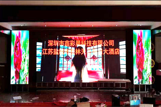 江苏盐城大酒店室内LED显示屏大屏幕由深圳市鑫彩晨光电科技有限公司承建。该室内全彩LED显示屏系统采用了P5规格,为江苏盐城某大酒店提供了便利,是室内全彩LED显示屏在博览演艺行业应用的一个经典工程案例。