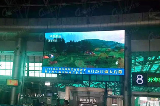 重庆龙头寺火车站候车室室内LED显示屏由福建强力巨彩光电科技有限公司承建。该室内全彩LED显示屏显示系统采用了P5规格,LED显示屏面积25平米,为重庆龙头寺火车站候车室提供了便利,是室内全彩LED显示屏在交通行业应用的一个经典工程案例。