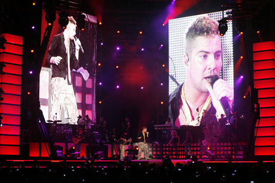 大卫·比斯巴尔西班牙演唱会室内LED显示屏大屏幕显示系统由惠州市德赛智能科技有限公司承建。该室内全彩LED显示屏信息发布系统采用了P16规格,LED显示屏面积39平米,为大卫·比斯巴尔西班牙演唱会提供了便利,是室内全彩LED显示屏在博览演艺行业应用的一个经典工程案例。