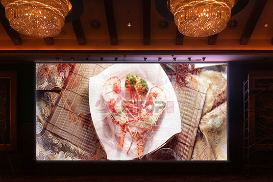 该LED显示屏位于酒店宴会厅内 ,锐拓显示综合考虑大厅的布局与光线条件,采用P5户内全彩高清LED显示屏,面积达69平米,具有色彩细腻丰富、响应时间少、刷新率高、色彩还原性好、视角广等显著优点,亮度可进行自适应调节,画质清晰自然,显示效果出众,播放流畅,为庆典、婚宴、大型会议等各类场合烘托气氛。锐拓LED显示屏具有稳定可靠的性能,散热性好、发热量低、静音节能,充分满足五星级酒店对LED显示屏品质的苛刻要求。