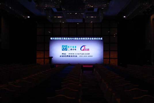 近日,银川国贸假日酒店,一块来自西安三通光电材料有限公司的P5室内全彩LED显示屏正式点亮。高端的小间距高清LED显示屏,也衬托出大酒店的高端大气上档次,为银川国贸假日酒店会议显示带来更多的人气和生意。
