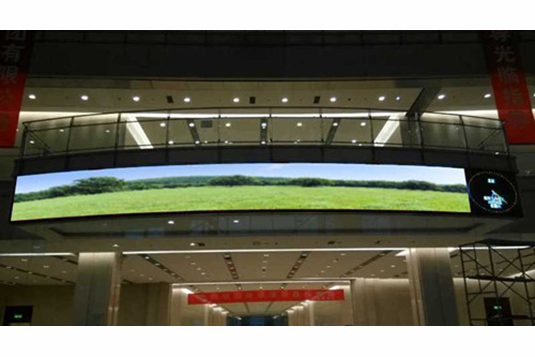 济南万佳润泰科技有限公司根据北京国家电网现场的结构特点,安装了一块面积达20平米的P6高清高亮节能LED显示屏,全彩弧形显示屏的投入使用,不仅起到烘托气氛、点缀环境的作用,也是一个发布信息的好平台。