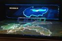 在主展厅的序厅,蓝硕打造了一套8块的组合式LED显示屏。等高异宽的显示画面,配合国内最大的实体沙盘(925㎡),以生动形象的手法展示了2020年重庆主城缙云山和明月山之间3700平方公里的山水园林城市形态。
