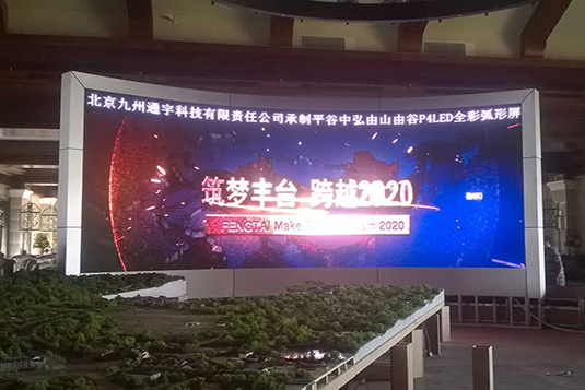 项目地处平谷生态涵养发展区,中弘股份旗下北京弘轩鼎成房地产开发有限公司将把该产品打造成为远离PM2.5的低碳、浅山、涵养自住型商品房。本屏位于该项目售楼处,是一块全彩弧形大屏。无缝拼接的套件设计把模块之间的拼接误差控制在正负0.1mm以内,易于安装,可根据用户的需求做成任意形状。