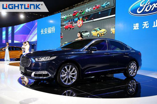 2015深港澳车展长安福特展位使用雷凌P8.9 LED彩幕屏24㎡。