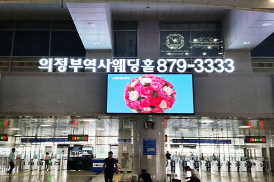 近日,韩国京畿道议政府市议政府轻电铁站进出口,一块来自深圳中祥创新的高清P4室内显示屏正式点亮,LED电子屏是采用箱体前维护技术,非常利于操作。作为重要的交通枢纽,议政府轻电铁站每天人流量数十万,在此安装LED广告电子屏,是现代化交通的重要组成部分。
