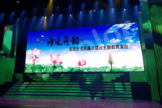 德彩光电P3.91室内全彩LED显示屏应用于南京市党风廉政建设主题教育,该LED显示屏面积为70平米。
