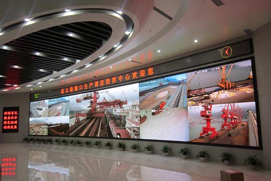 联硕光电P4室内全彩广告屏应用于连云港港口集团指挥调度大厅,显示面积为43.352平米。