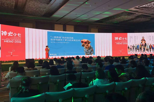 此次发布会主办方指定为本次发布会提供LED显示方案;特携120方K3.91为本次发布会锦上添花,整个《神犬小七》发布会在120方K3.91所搭建的弧形屏幕下进行,凭借着它高清的流畅的画面显示效果和完美的色彩表现,成为了现场备受瞩目的景观,为《神犬小七》发布会,提供了最唯美的烘托。