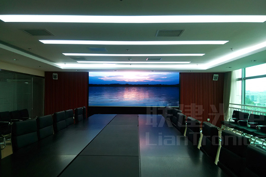 联建光电P1.6室内小间距LED显示屏应用于北京农商银行总部会议室,显示屏面积为5.69平米。