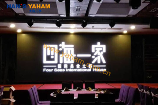 大族元亨P4室内贴片LED显示屏应用于广州四海一家,显示屏面积为 19.464平米。