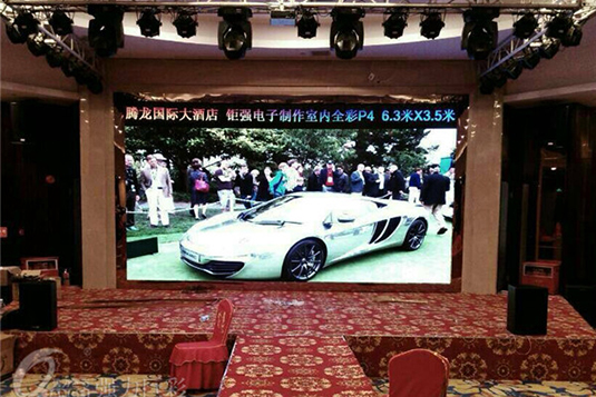 强力巨彩P4室内全彩LED显示屏应用于广东龙腾酒国际大酒店,该LED显示屏面积为18平米。