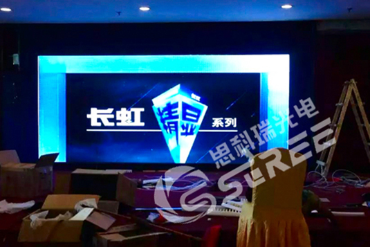 广西桂平乳泉井酒店室内p5高清LED显示屏安装完成,P5特点是高清,高刷新,稳定性好,物理密度40000点/㎡。该屏显示面积为14平方米。