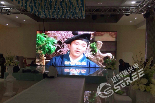 吉林长春市怡莱大酒店宴会厅PH6室内高清全彩LED屏,显示面积共15m²。由深圳全彩LED显示屏厂家思科瑞光电承制。