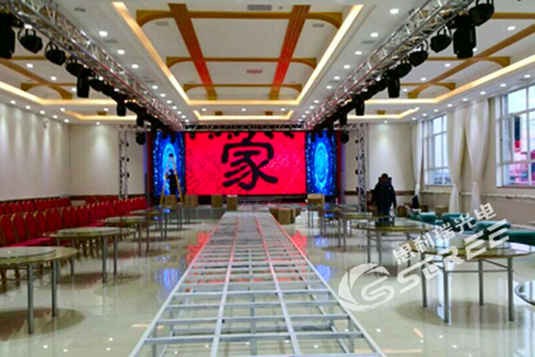 湛江市君豪大酒店PH7.62十六扫婚宴屏项目安装完成,LED屏显示面积为20平方米。深圳全彩LED显示屏厂家思科瑞光电承制。