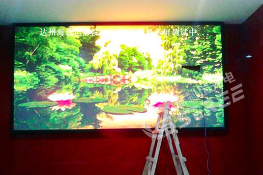 思科瑞光电为四川达州海逸电影院前台安装的P3全彩LED显示屏,显示面积为3.8m²。海逸影城坐落于达州城市中央中心广场。