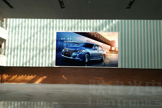 联建光电P4室内全彩LED显示屏应用于天津一汽丰田大厅展播室,显示屏面积为73平米。