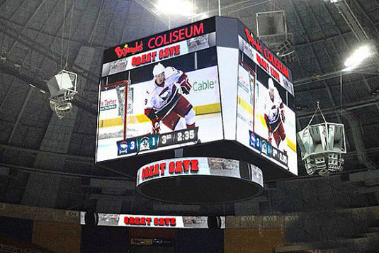 该中悬系统装配有四面主显示屏,四面辅助显示屏及一面环形显示屏。每面主显示屏约12.5英尺高乘22英尺宽,采用10mm像素间距。宽视角设计确保体育场内任何位置都可以获得良好的画质。