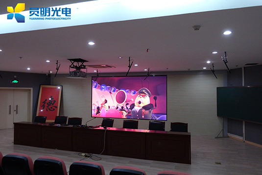 员明光电P4室内高清全彩LED显示屏应用于高新国际小学录播厅。