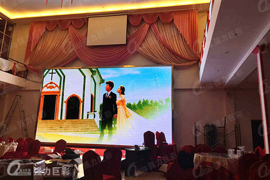 强力巨彩P4室内全彩LED显示屏应用于贵州曲靖银水苑,该LED显示屏面积为30平米。
