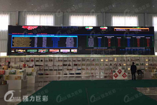 强力巨彩P4室内全彩LED显示屏大屏幕系统应用于临沂农产品交易中心,显示屏面积为90平米。
