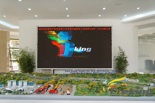 深圳创彩源科技P1.923室内高清LED显示屏应用于肯尼亚蒙内铁路,蒙内铁路是肯尼亚百年来建设的首条新铁路,是东非铁路网的咽喉,也是东非次区域互联互通重大项目。