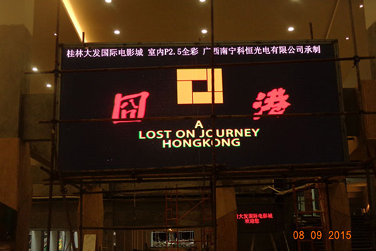 科恒光电P2.5室内小间距LED显示屏应用于桂林大发国际电影城,显示屏面积为25平方米。