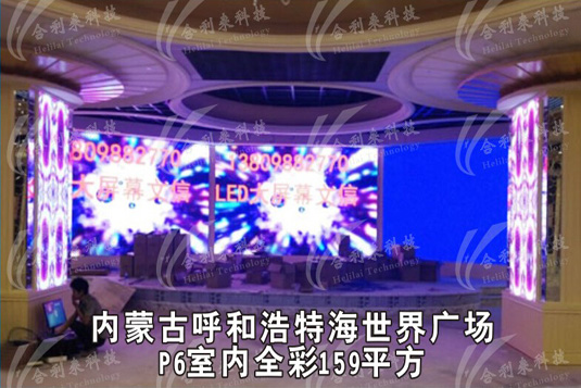 呼和浩特海世界广场室内全彩LED显示屏,采用p6规格,面积159平米。