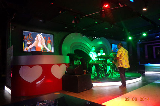 科恒光电P6室内全彩LED显示屏应用于南宁鸽子酒吧,显示屏面积为6平方米。