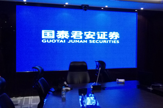 上海国泰君安证券股份有限公司为了提高企业管理层的工作效率,在办公会议室特意安装了视爵光旭的IL-FISS-IRS1.8型号的小间距LED显示屏,屏体面积为7平方米,像素点间距为1.81mm,高清的显示屏画面为公司领导层展开视频会议以及资料讲解都提供了可靠的保障,也为企业环境形象增添了色彩。