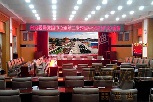 荆门市地税局室内全彩LED显示屏大屏幕显示系统由深圳市美亚迪光电有限公司承建。该室内全彩LED显示屏会议显示系统采用了P3规格,成为荆门市地税局会议显示的一个重要平台,是室内全彩LED显示屏在会议显示应用的一个经典工程案例。