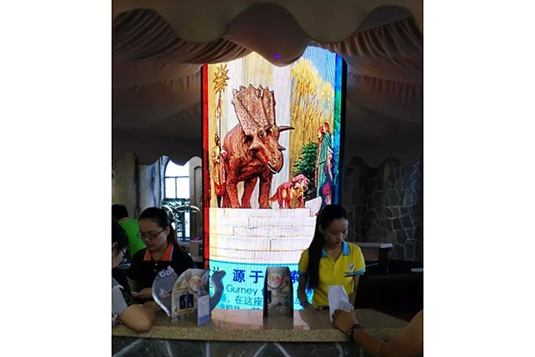 中国首家恐龙主题度假酒店由江苏亮彩电子承建的室内P4全彩圆柱屏顺利投入使用!这也是江苏亮彩电子为常州恐龙城迪诺水镇承建的第三块全彩高清LED显示屏。