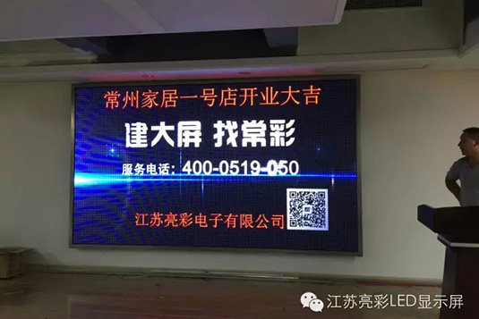 家居行业龙头一号家居网常州生活馆由江苏亮彩电子承建的室内P4全彩LED显示屏顺利投入使用,此全彩显示屏也成为一号生活馆一道亮丽风景。