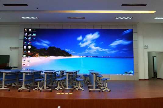学校LED显示屏教学系统为彩视光电承制,采用户内高清P4全彩大屏,配置了多功能视频处理器,可实时学校的教学、会议、校园演出等用途!!