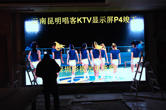 昆明唱客顶级量版式KTV采用深圳市彩视光电P4室内全彩LED显示屏,显示屏面积为15平方米。