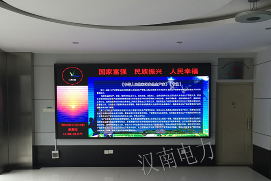 汉南电力室内全彩LED显示屏采用P3规格,面积5.71平米。