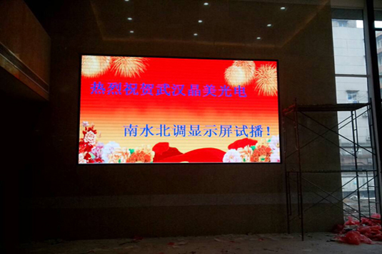 武汉南水北调室内全彩LED显示屏采用P4规格,面积15平米。