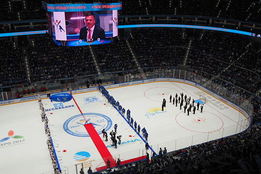通过定制化的CN10条形显示屏,安装成一个巨型的椭圆形屏带,滚动播放冰球场的LOGO,广告走字,以及广告视频等,让全场观在现场感觉360度的播放效果。