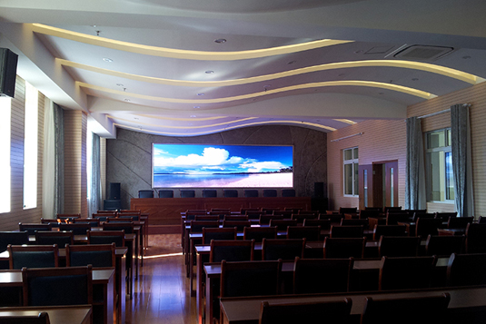 上海老年大学室内全彩LED显示屏采用P4规格,面积8平米。