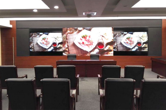吉林省安全生产监督局会议室室内小间距LED屏采用P1.923mm ,显示屏面积为5.76平米。