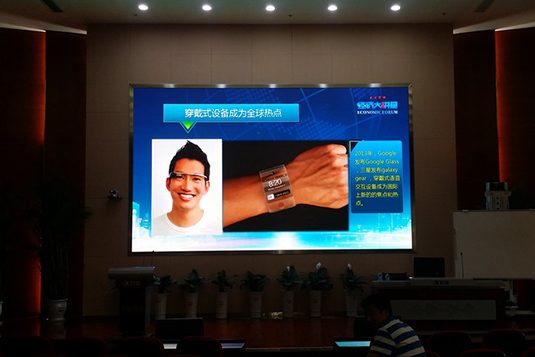 当前位置:首页>>LED精彩案例>>科大飞讯报告厅室内小间距LED显示屏